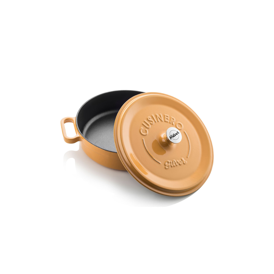 Vse litoželezne posode v naši spletni trgovini so v celoti emajlirane. Gre za postopek, kjer se v prah zmleto steklo, s taljenjem veže na kovinsko podlago pri visokih temperaturah. Po hlajenju nastane čvrsta steklena prevleka na kovinski površini. Emajlirana je tako zunanja kot notranja stran posode